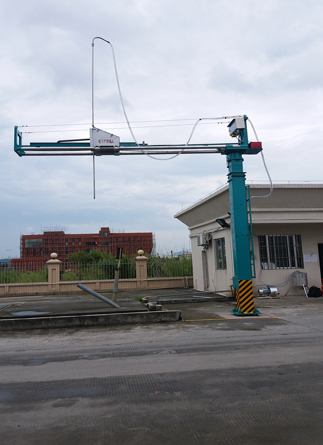 1、旋转臂的旋转靠旋转电机带动螺旋锥形齿轮带动转向立柱旋转,从而带动旋转臂转动。