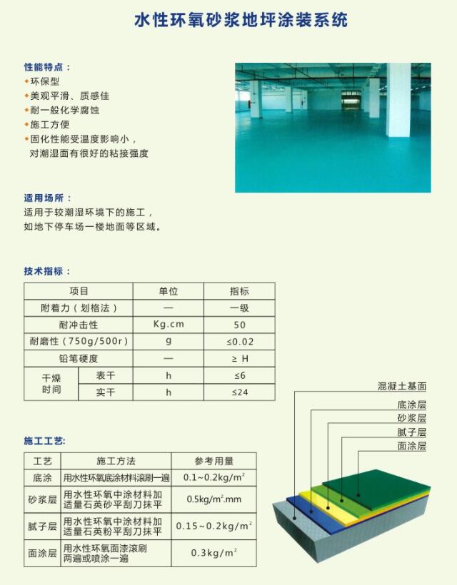 地坪解决方案11:水性环氧砂浆地坪涂装系统