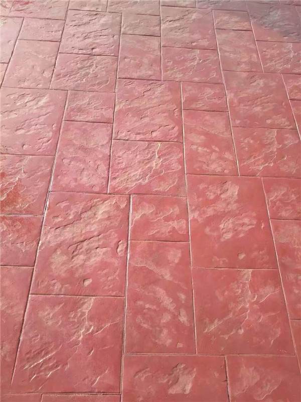 七.彩色压花地坪使用无机着色剂和具有防紫外线的溶基混凝土密封剂相互作用,色彩稳定.防水防霉,不怕化学制品腐蚀,适应温度剧烈变化,无需经常维护,必要时加涂一次彩色压模地坪的溶基混凝土密封剂后又亮丽如新;