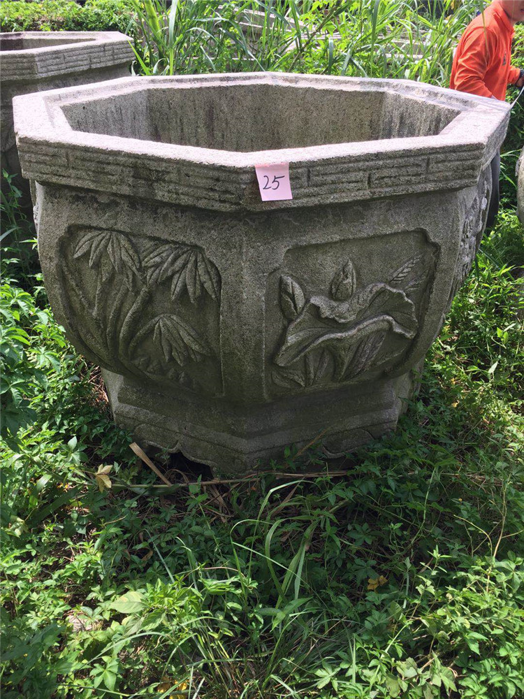 仿古石雕花盆