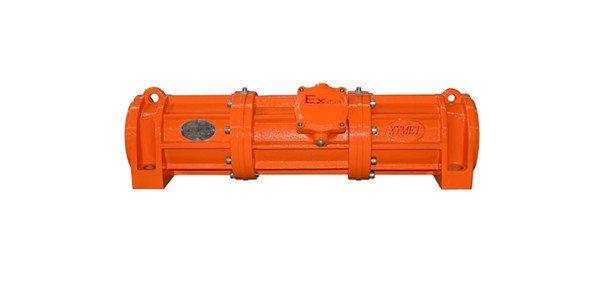 VLBL系列法兰式隔爆振动电机设计成细长结构,激振力作用点距离(地脚孔的距离)特宽,尤其适用于宽距离处传递激振力的场合,广泛用作石油行业泥浆分离筛激振源。泥浆分离筛装配此类振动电机,运行更平稳,构件受力更均匀,有效延长其使用寿命。VLBL系列产品可单独使用,亦可组合使用。其防爆性能符合GB3836.2-2000《爆炸性气体环境用电气设备第二部分:隔爆型“d”》的规定,防爆标志为dIIBT4,适用于 II类A、B级T4组别可燃性气体或蒸汽与空气形成的爆炸性混合物的场所。