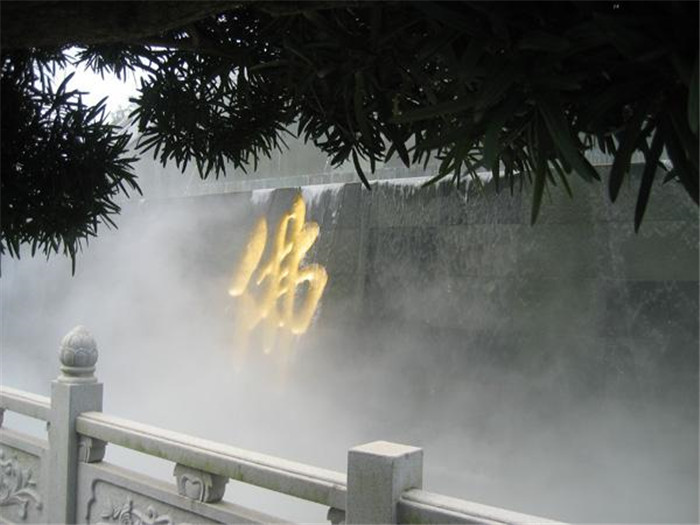 人造雾设备系统是取用被净化处理过后的自来水,进入人造雾主机,由主机加压至5-7MPa,经高压管道道输送至喷雾场所,最后由结构精密的雾化喷头高速喷出,形成雾化颗粒仅为5-10微米的雾团,瞬间产生的大量细微水雾粒子在短时间内迅速达到浓浓的飘渺白雾效果,如同山中自然云雾,景观效果极其引人入胜,同时更兼具除尘降尘、净化加湿空气的功能;水雾中含有大量负离子,置身其中有益身心健康。