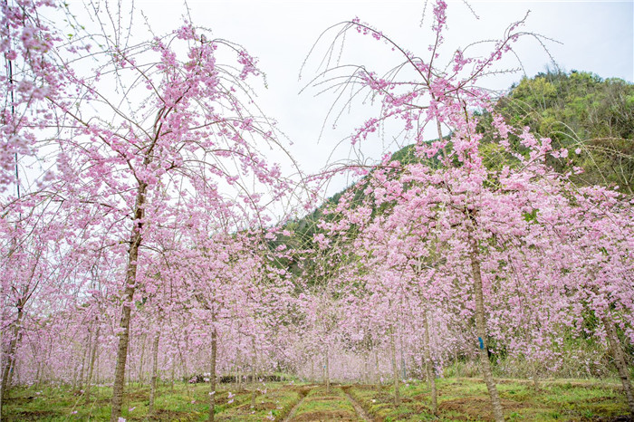 本苗木场地处浙江金华市浦江县境内,圃地300余亩,主要从事以八重红枝垂为主的垂枝樱花的扦插繁育和原生工程苗的培育,现有垂樱品种10余种,定植八重红枝垂万余株。