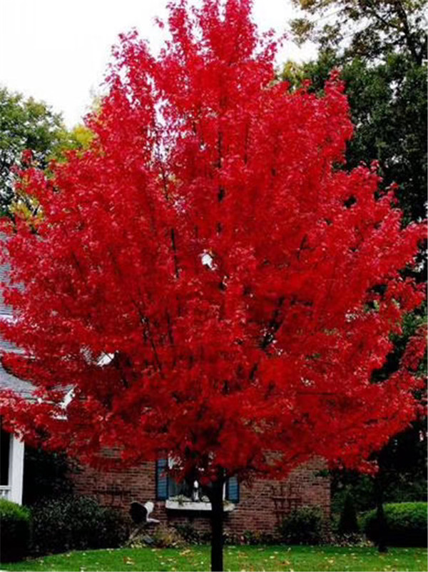 黄金枫大树夏天变淡绿色,春秋变金黄带彩红色,无比美丽。
