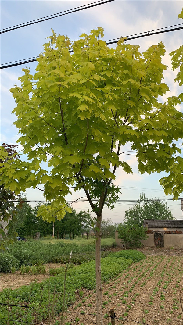 黄金枫大树夏天变淡绿色,春秋变金黄带彩红色,无比美丽。