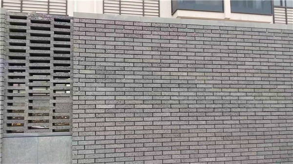 火山石精切灰色条形砖室外应用效果
