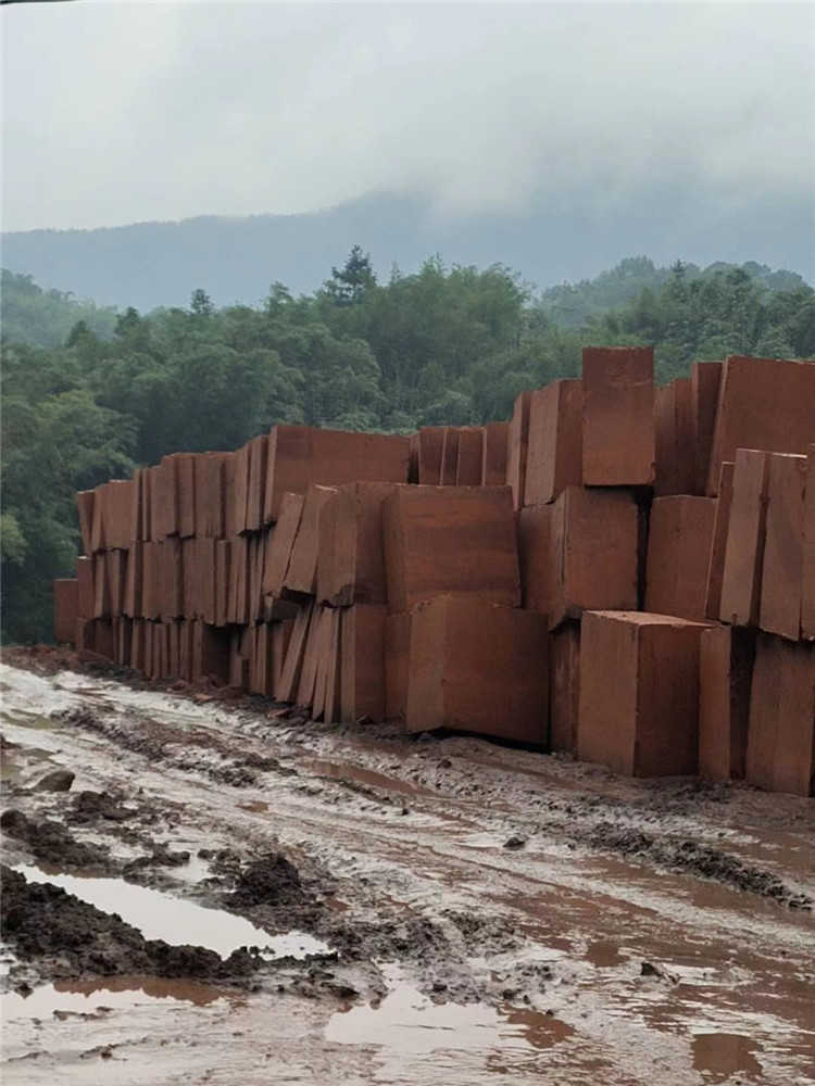 红砂岩荒料堆场