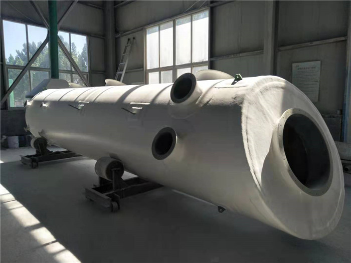 玻璃钢塔采用乙烯基不饱合树脂为基体,以无碱无捻玻璃纤维为增强材料,通过数道生产工艺制作而成。外部采用耐老化防紫外线胶衣树脂,园形重叠式分段组装结构形式。本公司生的玻璃钢塔具有强度高,结构简单,制作方便,占地面积小,净化效率高等优点,达到了国家标准,该塔是一种新型的净化装置,它采用玻璃钢为主要材料。产品主要应用于、危险品固废处理、固废、危废尾气后处理阶段;