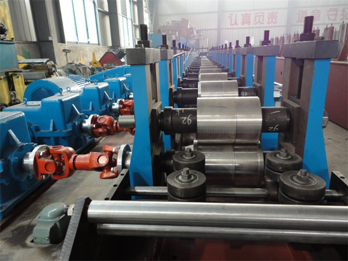 我公司研发的重型仓储货架立柱成型生产线为一次冷弯成型设备。